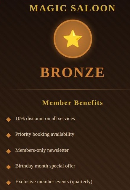 Magic Saloon Bronze Membership Program