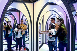 The Amazing Mirror Maze is an interactive visual adventure designed by the world’s most creative design team to stimulate and challenge your mind.